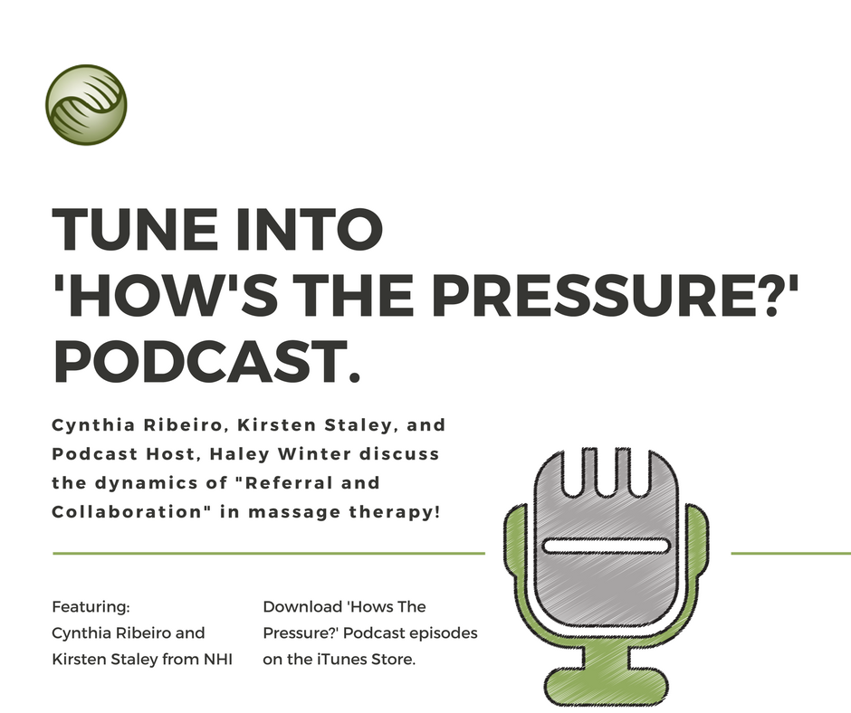Cynthia Ribeiro, NHI’S Advanced NeuroMuscular Therapy (ANMT) Manager & Instructor and this year’s AMTA Teacher of the Year and Kirsten Staley, NHI’s Assistant ANMT Program Manager were on for a second time on ‘How’s The Pressure?’ podcast, hosted by Haley Winter.